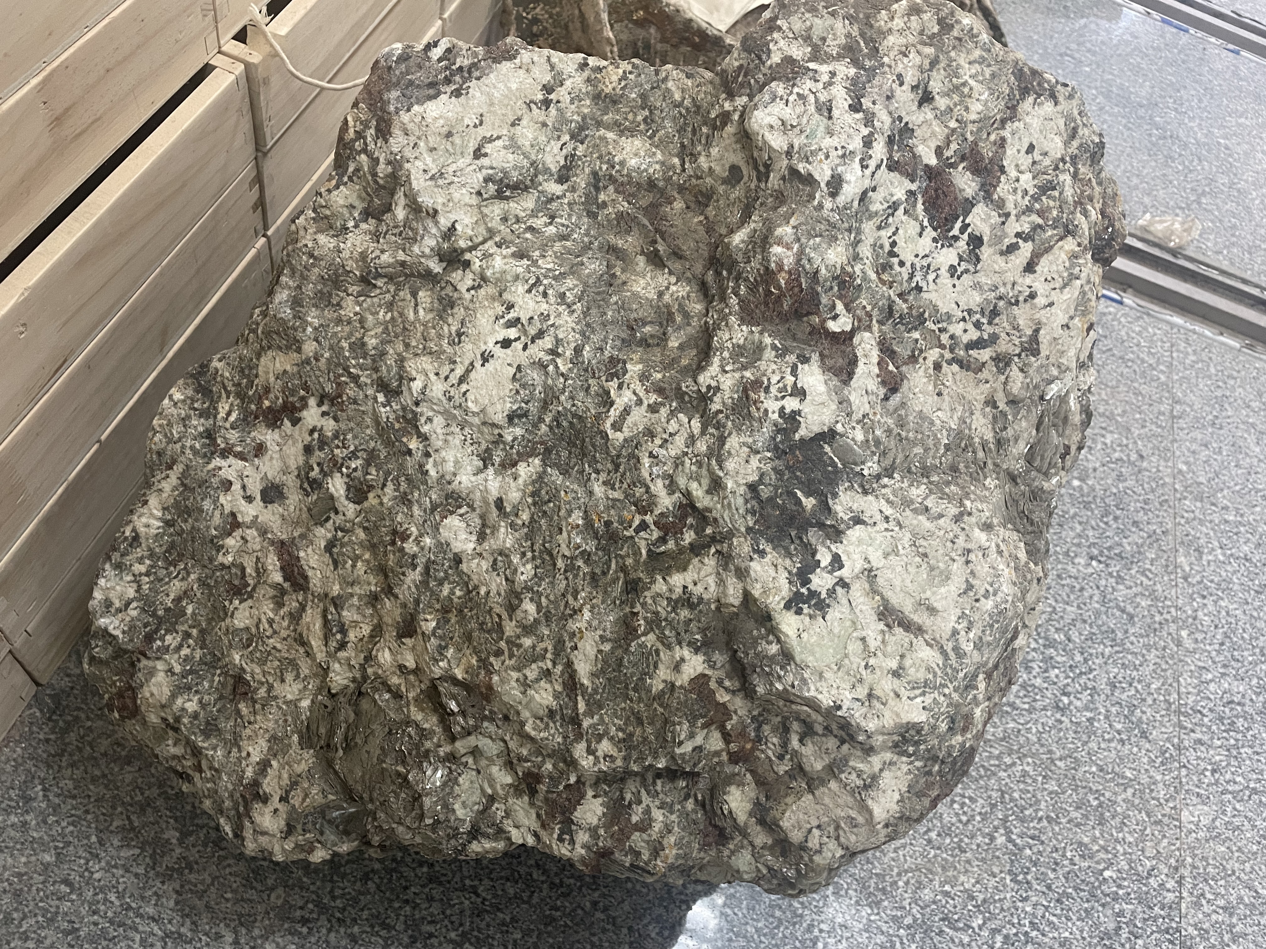 展样采集于新疆青河可可托海功勋矿三号坑负218米处,主要矿物有白云母、钾长石、斜长石、石英、绿柱石、石榴子石及少量黑云母等,矿石矿物为绿柱石,矿石具粗晶-伟晶结构,块状构造,肉眼可见数个母指或中指大小的绿柱石矿物单晶体。该矿盛产世界上已知的140多种有用矿物中的86种矿物,其中铍资源量居全国首位,铯、锂、钽资源量分别居全国第五、六、九位。其矿种之多,品位之高,储量之丰富,层次之分明,开采规模之大,为国内独有、世界罕见,与世界最著名的加拿大贝尔尼克湖矿齐名,是全球地质界公认的“天然地质博物馆”。