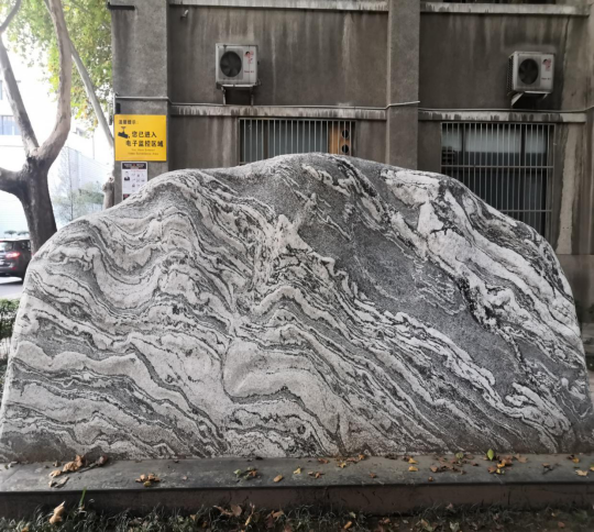 展样由呈条带状分布的浅色脉体和灰黑色基体两部分组成。浅色脉体主要由斜长石、钾长石、石英和少量黑云母组成。灰黑色基体则由黑云母、斜长石、普通角闪石和石英组成,二者构成条带状构造,条带部分具片状-粒状变晶结构,片麻状构造。岩石在变质过程中受构造变形的叠加,脉体发育肠状褶皱和片麻理的褶皱构造,显示为深层次的塑性变形。