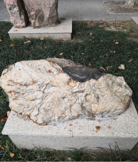 展样主要由粗大的方解石晶体组成,具不等粒结构,块状构造。为富CaCO
